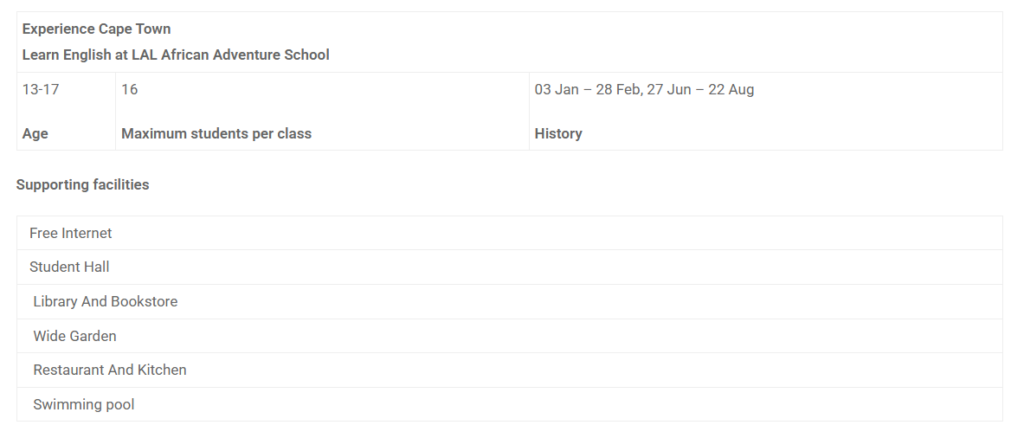 No one has as much experience as LAL in running youth student courses in Cape Town. This is a great city, a great place to learn English and understand other cultures in a safe and secure environment.